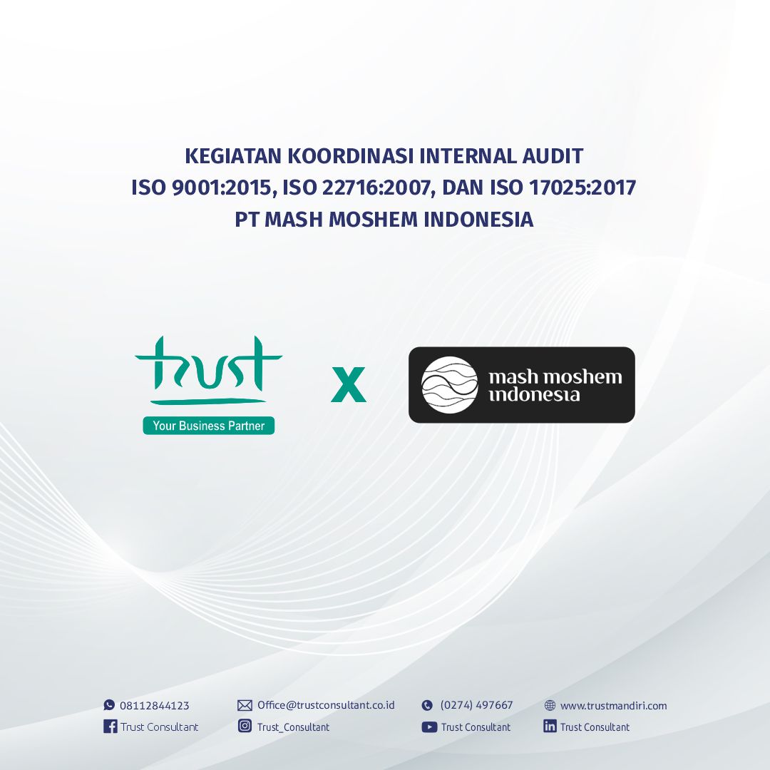 Kegiatan Koordinasi Internal Audit ISO 9001:2015, ISO 22716:2007, dan ISO 17025:2017 pada PT Mash Moshem IndonesiaPublished by Trust Consultant on November 4, 2025November 4, 2025 Categories: gallery Tags: 027449766708112654585ISO 17025iso 22716ISO 9001Jasa Konsultan ISOKlien Trust mandiriPT Mash Moshem Indonesia 0 Comments Leave a Reply Cancel reply Your email address will not be published. Required fields are marked * Name * Email * Website What's on your mind? Save my name, email, and website in this browser for the next time I comment. Δ