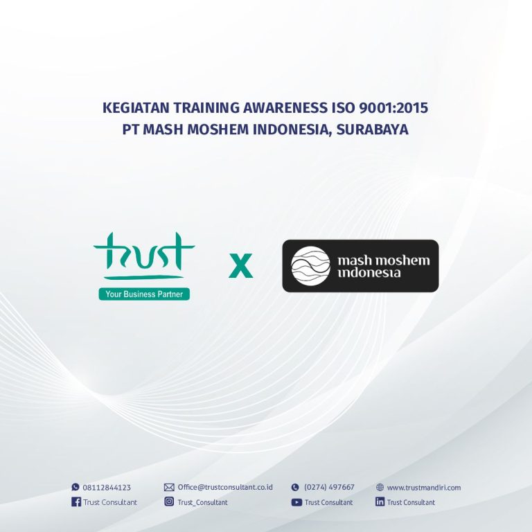 gallery Kegiatan Training Awareness ISO 9001:2015 pada PT Mash Moshem Indonesia, SurabayaBy Trust Consultant, 2 months4 months ago gallery Kegiatan Training Awareness ISO 9001:2015 pada PT New Ratna Motor, SemarangBy Trust Consultant, 2 months4 months ago gallery Kegiatan Pre Assesment pada PT Berlian Duta Energi (BDE), SamarindaBy Trust Consultant, 2 months4 months ago gallery Kegiatan Pre Assesment pada PT Berlian Duta Energi (BDE), SamarindaBy Trust Consultant, 2 months4 months ago Posts pagination 1 2 … 16 Next