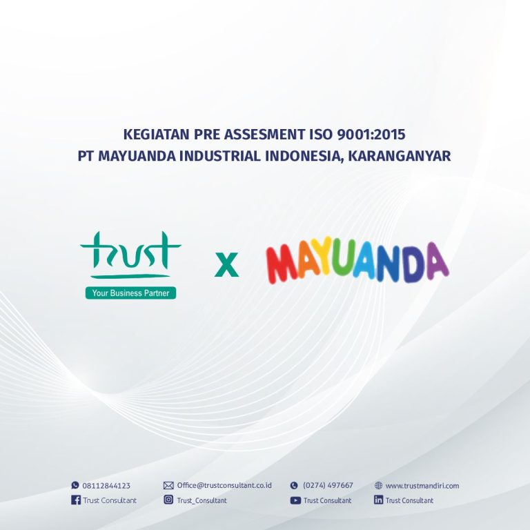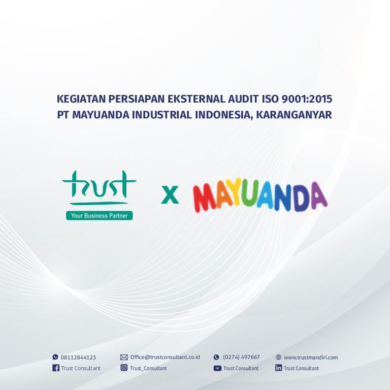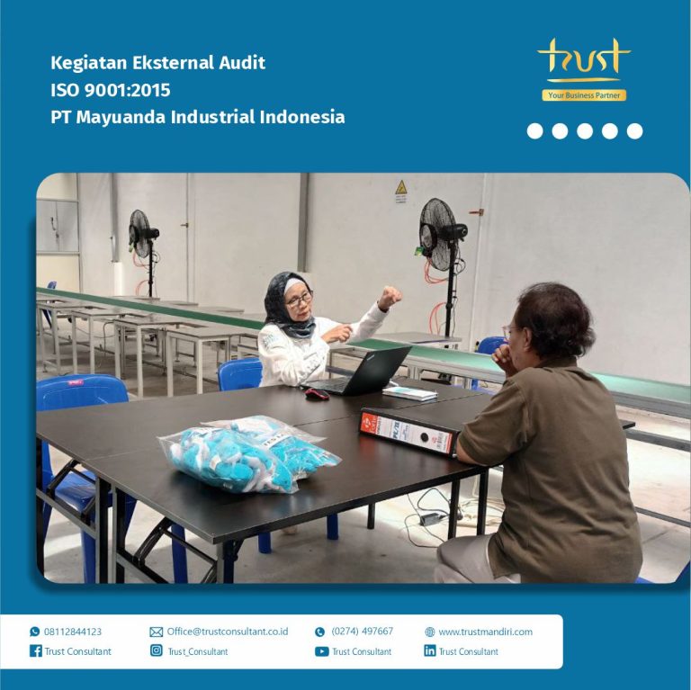 gallery Kegiatan Pre Assesment ISO 9001:2015 pada PT Mayuanda Indutrial Indonesia, KaranganyarBy Trust Consultant, 4 months4 months ago gallery Kegiatan Persiapan Eksternal Audit ISO 9001:2015 pada PT Mayuanda Industrial Indonesia, KaranganyarBy Trust Consultant, 4 months4 months ago gallery Kegiatan Eksternal Audit ISO 9001:2015 pada PDAB Tirtatama DIY, YogyakartaBy Trust Consultant, 4 months4 months ago gallery Kegiatan Review Document ISO 9001:2015 pada CV Ainun Mandiri Sejahtera, KendariBy Trust Consultant, 4 months4 months ago Posts pagination 1 2 … 4 Next