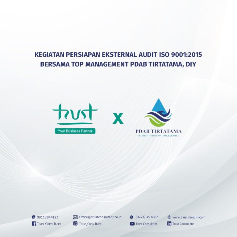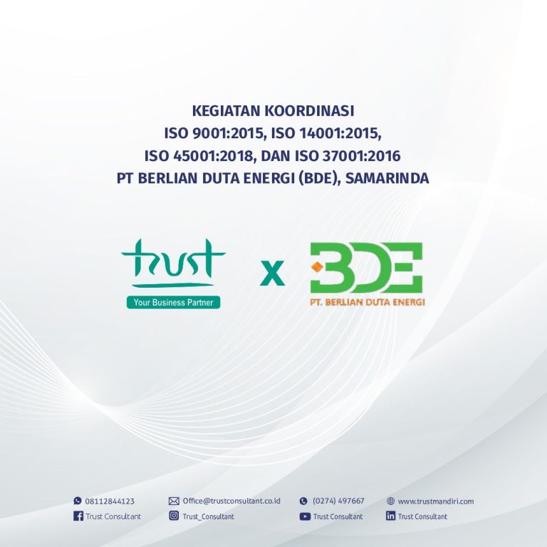 gallery Kegiatan Training Awareness ISO 9001:2015 pada CV Rumah Mesin, Yogyakarta Day 1By Trust Consultant, 5 months5 months ago gallery Kegiatan Koordinasi ISO 9001:2015, ISO 14001:2015, ISO 45001:2018, ISO 37001:2016 pada PT Berlian Duta Energi (BDE), SamarindaBy Trust Consultant, 5 months8 months ago Client Balai K3 DIYBy Trust Consultant, 5 months ago Client PT Bigga Damai UtamaBy Trust Consultant, 5 months ago Client PT. Des Teknologi InformasiBy Trust Consultant, 5 months ago Client PT. Teknologi Kode Indonesia (TLAB)By Trust Consultant, 5 months ago Client PT Sarana Insan Muda Selaras (Life Media)By Trust Consultant, 5 months ago gallery Kegiatan Persiapan Eksternal Audit ISO 9001:2015 Bersama Top Management PDAB Tirtatama, DIYBy Trust Consultant, 5 months8 months ago Client PT Tirta Utama Jawa TengahBy Trust Consultant, 5 months ago Client PT Jordan Juara SelulerBy Trust Consultant, 5 months5 months ago Client CV Ainun Mandiri SejahteraBy Trust Consultant, 5 months5 months ago Posts pagination Previous 1 2 3 4 Next